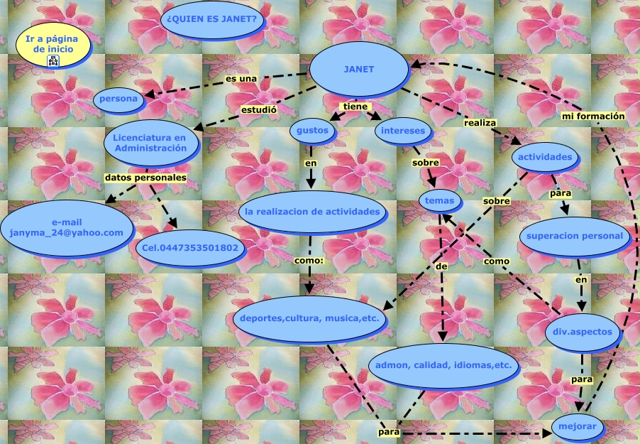 Este mapa conceptual tiene información relacionada a: PRESENTACIÓN JANET, deportes,cultura, musica,etc. para mejorar, Licenciatura en Administración datos personales e-mail janyma_24@yahoo.com, gustos en la realizacion de actividades, Licenciatura en Administración datos personales Cel.0447353501802, JANET tiene gustos, la realizacion de actividades como: deportes,cultura, musica,etc., JANET estudió Licenciatura en Administración, intereses sobre temas, admon, calidad, idiomas,etc. para mejorar, actividades para superacion personal