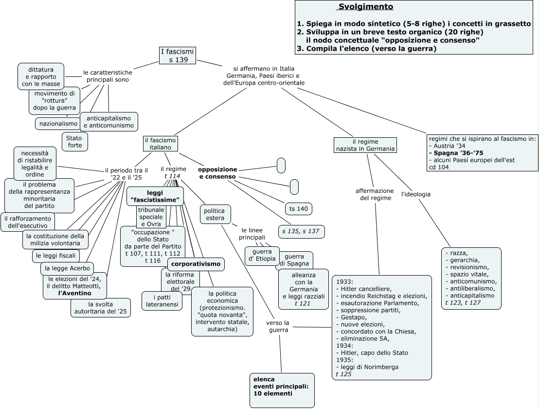 provam3, il fascismo italiano il regime t 114 "occupazione " dello Stato da parte del Partito t 107, t 111, t 112 t 116, il fascismo italiano il regime t 114 corporativismo, politica estera le linee principali alleanza con la Germania e leggi razziali t 121, il fascismo italiano il regime t 114 i patti lateranensi, il regime nazista in Germania affermazione del regime 1933: - Hitler cancelliere, - incendio Reichstag e elezioni, - esautorazione Parlamento, - soppressione partiti, - Gestapo, - nuove elezioni, - concordato con la Chiesa, - eliminazione SA, 1934: - Hitler, capo dello Stato 1935: - leggi di Norimberga t 125, il regime nazista in Germania l'ideologia - razza, - gerarchia, - revisionismo, - spazio vitale, - anticomunismo, - antiliberalismo, - anticapitalismo t 123, t 127, 1933: - Hitler cancelliere, - incendio Reichstag e elezioni, - esautorazione Parlamento, - soppressione partiti, - Gestapo, - nuove elezioni, - concordato con la Chiesa, - eliminazione SA, 1934: - Hitler, capo dello Stato 1935: - leggi di Norimberga t 125 verso la guerra elenca eventi principali: 10 elementi, I fascismi s 139 si affermano in Italia Germania, Paesi iberici e dell'Europa centro-orientale regimi che si ispirano al fascismo in: - Austria '34 - Spagna '36-'75 - alcuni Paesi europei dell'est cd 104, il fascismo italiano opposizione e consenso ts 140, il fascismo italiano il regime t 114 politica estera
