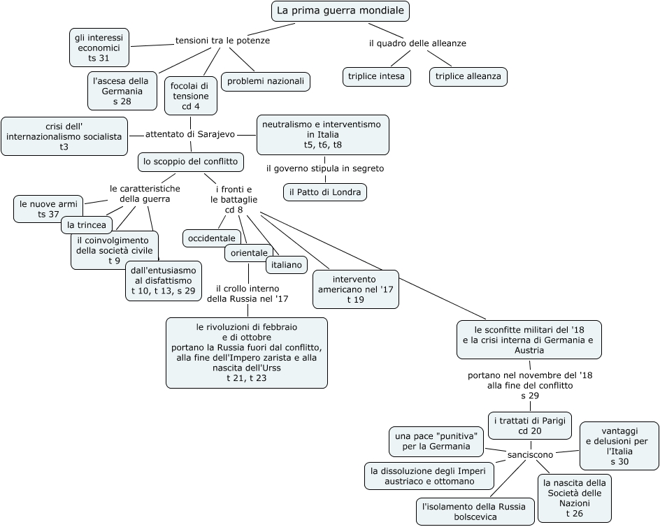 m1, i trattati di Parigi cd 20 sanciscono vantaggi e delusioni per l'Italia s 30, neutralismo e interventismo in Italia t5, t6, t8 il governo stipula in segreto il Patto di Londra, lo scoppio del conflitto le caratteristiche della guerra la trincea, lo scoppio del conflitto i fronti e le battaglie cd 8 italiano, lo scoppio del conflitto i fronti e le battaglie cd 8 orientale, i trattati di Parigi cd 20 sanciscono una pace "punitiva" per la Germania, La prima guerra mondiale il quadro delle alleanze triplice intesa, lo scoppio del conflitto le caratteristiche della guerra il coinvolgimento della società civile t 9, i trattati di Parigi cd 20 sanciscono l'isolamento della Russia bolscevica, lo scoppio del conflitto i fronti e le battaglie cd 8 le sconfitte militari del '18 e la crisi interna di Germania e Austria