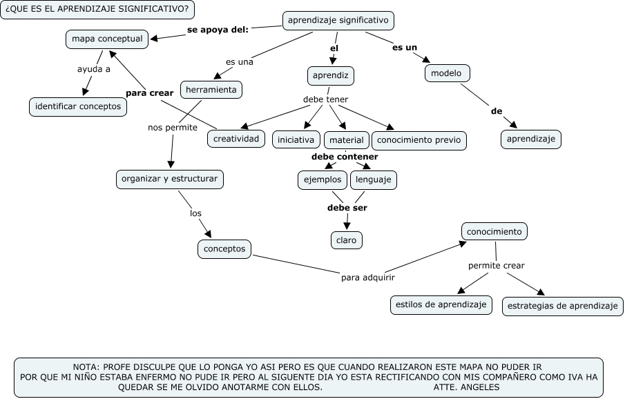 Este mapa conceptual tiene información relacionada a: juan,lore,sara,rosa,janet,angeles, aprendizaje significativo se apoya del: mapa conceptual, herramienta nos permite organizar y estructurar, aprendiz debe tener material, aprendizaje significativo es una herramienta, conocimiento permite crear estrategias de aprendizaje, creatividad para crear mapa conceptual, lenguaje debe ser claro, mapa conceptual ayuda a identificar conceptos, aprendiz debe tener iniciativa, ejemplos debe ser claro
