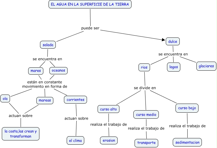 Este mapa conceptual tiene información relacionada a: alvaro tenorio3, oceanos están en constante movimiento en forma de corrientes, rios se divide en curso bajo, corrientes actuan sobre el clima, oceanos están en constante movimiento en forma de ola, rios se divide en curso medio, mares están en constante movimiento en forma de corrientes, mareas actuan sobre la costa,las crean y transforman, rios se divide en curso alto, salada se encuentra en oceanos, mares están en constante movimiento en forma de mareas