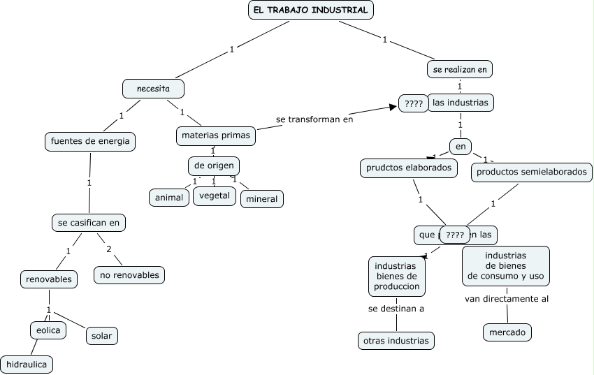 Este mapa conceptual tiene información relacionada a: Ana Rosa Gómez Alba, fuentes de energia 1 se casifican en, prudctos elaborados 1 que producen las, EL TRABAJO INDUSTRIAL 1 se realizan en, que producen las 1 industrias bienes de produccion, de origen 1 vegetal, de origen 1 animal, en 1 productos semielaborados, materias primas 1 de origen, en 1 prudctos elaborados, productos semielaborados 1 ????