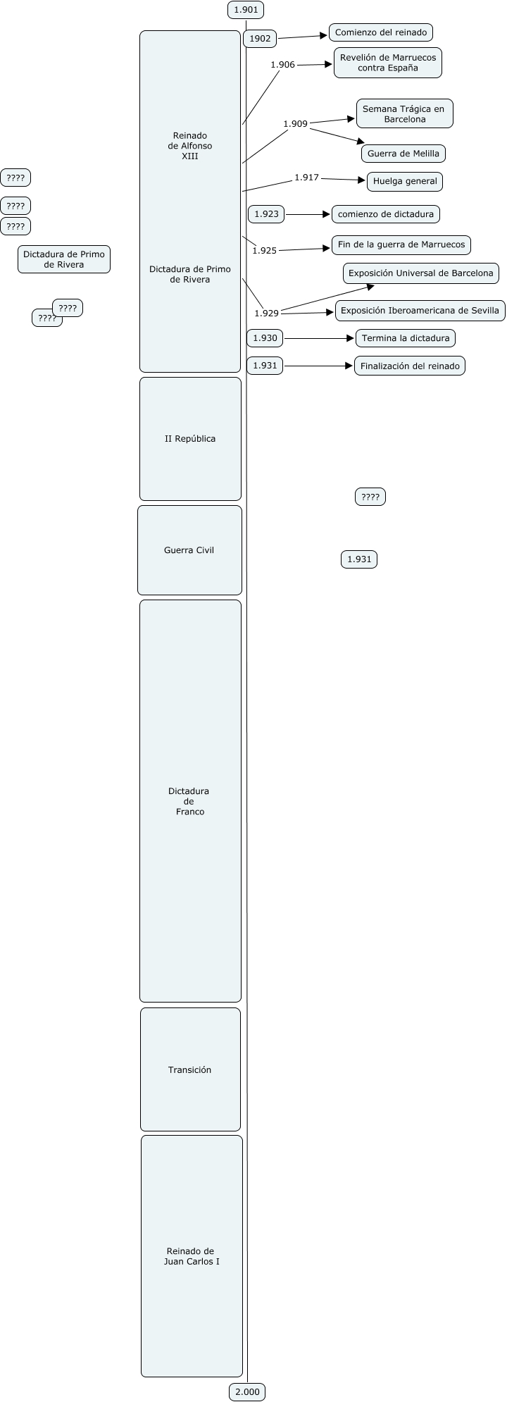 Este mapa conceptual tiene información relacionada a: 08.Pablo Cossío Guerrero - España Siglo XX, Reinado de Alfonso XIII Dictadura de Primo de Rivera 1.925 Fin de la guerra de Marruecos, 1.901 2.000, Reinado de Alfonso XIII Dictadura de Primo de Rivera 1.906 Revelión de Marruecos contra España, 1.923 comienzo de dictadura, Reinado de Alfonso XIII Dictadura de Primo de Rivera 1.909 Semana Trágica en Barcelona, Reinado de Alfonso XIII Dictadura de Primo de Rivera 1.909 Guerra de Melilla, Reinado de Alfonso XIII Dictadura de Primo de Rivera 1.929 Exposición Iberoamericana de Sevilla, 1902 Comienzo del reinado, 1.931 Finalización del reinado, 1.930 Termina la dictadura