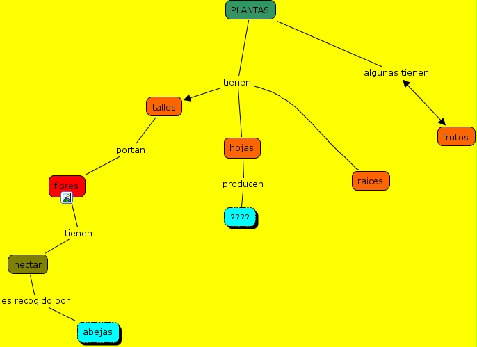 plantas, PLANTAS tienen raices, nectar es recogido por abejas, hojas producen ????, tallos portan flores, flores tienen nectar, PLANTAS tienen tallos, PLANTAS tienen hojas, PLANTAS algunas tienen frutos