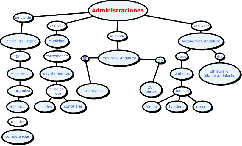 Este mapa conceptual tiene información relacionada a: 14 marchena, ayuntamientos tiene al frete alcaldes, ayuntamientos tiene al frete concejales, minstros atienden competencias, Administraciones se divide Autonomica Andaluza, simbolos que son bandera, Provincial Andaluza dia 28 febrero, Provincial Andaluza es pluriprovincial, Municipal corresponde ayuntamientos, Administraciones se divide General de Estado, Autonomica Andaluza día 28 febrero (dia de andalucia)