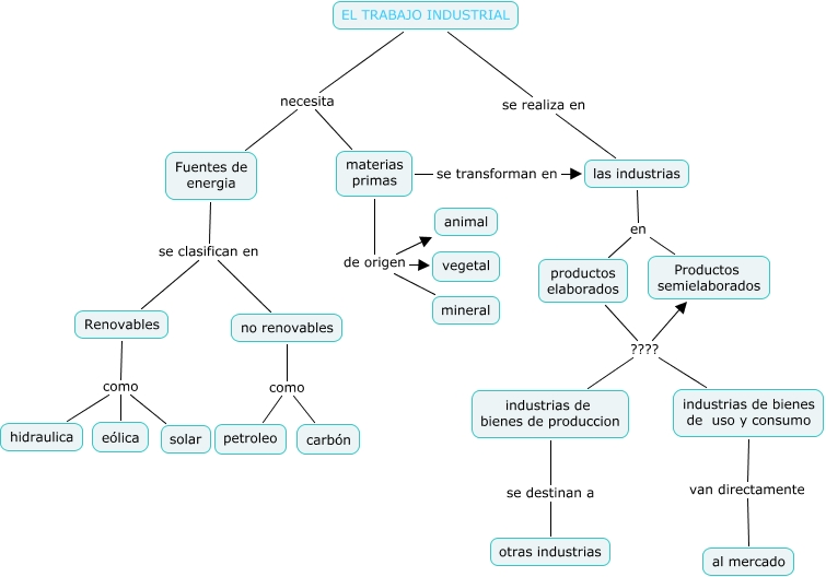 Este mapa conceptual tiene información relacionada a: Marina Rodriguez Gomez 3ºB, Renovables como solar, productos elaborados ???? Productos semielaborados, las industrias en Productos semielaborados, productos elaborados ???? industrias de bienes de produccion, EL TRABAJO INDUSTRIAL necesita Fuentes de energia, EL TRABAJO INDUSTRIAL se realiza en las industrias, Fuentes de energia se clasifican en Renovables, las industrias en productos elaborados, industrias de bienes de produccion se destinan a otras industrias, EL TRABAJO INDUSTRIAL necesita materias primas