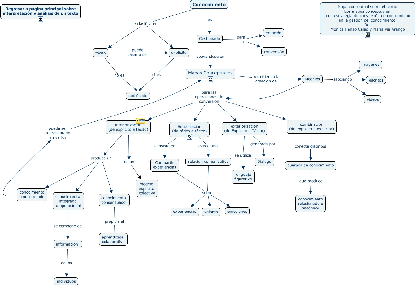 Este mapa conceptual tiene información relacionada a: Conocimiento, Modelos asociando imagenes, explicito si es codificado, Mapas Conceptuales para las operaciones de conversión interiorización (de explicito a tácito), Modelos para las operaciones de conversión interiorización (de explicito a tácito), exteriorizacion (de Explicito a Tácito) se utiliza lenguaje figurativo, Modelos para las operaciones de conversión exteriorizacion (de Explicito a Tácito), Conocimiento es Gestionado, Gestionado para su creación, exteriorizacion (de Explicito a Tácito) generada por Dialogo, Modelos para las operaciones de conversión Socialización (de tácito a tácito), Modelos asociando videos, Compartir experiencias sobre experiencias, relacion comunicativa sobre emociones, Modelos para las operaciones de conversión combinacion (de explicito a explicito), combinacion (de explicito a explicito) conecta distintos cuerpos de conocimiento, Mapas Conceptuales permitiendo la creacion de Modelos, Compartir experiencias sobre valores, relacion comunicativa sobre valores, tácito no es codificado, conocimiento conceptuado puede ser representado en varios Mapas Conceptuales