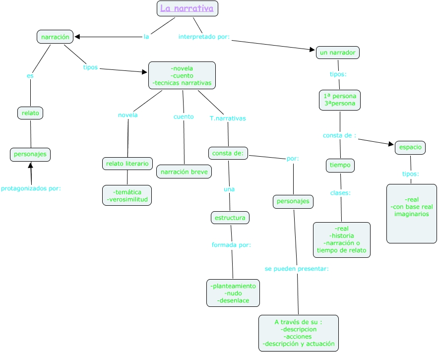 Este mapa conceptual tiene información relacionada a: cristina vazquez perez, 1ª persona 3ªpersona consta de : espacio, -novela -cuento -tecnicas narrativas T.narrativas consta de:, -novela -cuento -tecnicas narrativas novela relato literario, estructura formada por: -planteamiento -nudo -desenlace, 1ª persona 3ªpersona consta de : tiempo, tiempo clases: -real -historia -narración o tiempo de relato, narración es relato, narración tipos -novela -cuento -tecnicas narrativas, espacio tipos: -real -con base real imaginarios, -novela -cuento -tecnicas narrativas cuento narración breve