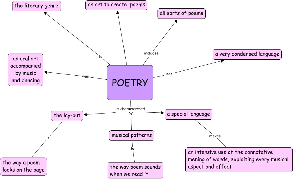 Questa Mappa Concettuale ha informazioni correlate a: giusti irene fontanelli laura masotti elena 'poetry', POETRY is characteresed by musical patterns, POETRY is characteresed by a special language, POETRY includes all sorts of poems, a special language makes an intensive use of the connotative mening of words, exploiting every musical aspect and effect, POETRY is the literary genre, musical patterns is the way poem sounds when we read it, POETRY is characteresed by the lay-out, the lay-out is the way a poem looks on the page, POETRY uses a very condensed language, POETRY is an art to create poems