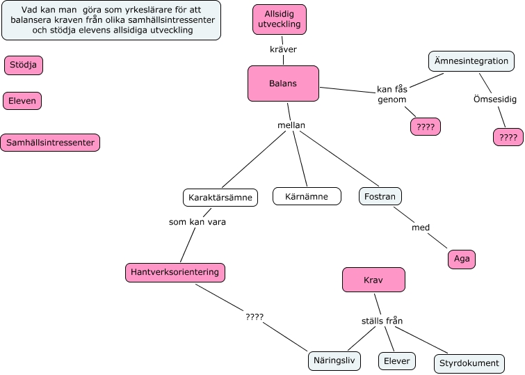 Den här kartan innehåller information om: Reflektion_projektplan, Allsidig utveckling kräver Balans, Balans mellan Kärnämne, Hantverksorientering ???? Näringsliv, Krav ställs från Näringsliv, Krav ställs från Elever, Ämnesintegration Ömsesidig ????, Balans mellan Karaktärsämne, Balans mellan Fostran, Krav ställs från Styrdokument, Ämnesintegration kan fås genom ????, Balans kan fås genom ????, Karaktärsämne som kan vara Hantverksorientering, Fostran med Aga