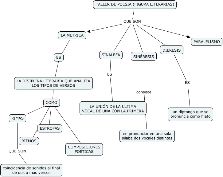 Este mapa conceptual tiene información relacionada a: jonatan lopez caballero2b, SINÉRESIS consiste en pronunciar en una sola silaba dos vocales distintas, LA DISIPLINA LITERARIA QUE ANALIZA LOS TIPOS DE VERSOS ???? RIMAS, TALLER DE POESIA (FIGURA LITERARIAS) QUE SON LA METRICA, DIÉRESIS ES un diptongo que se pronuncia como hiato, SINALEFA ES LA UNIÓN DE LA ULTIMA VOCAL DE UNA CON LA PRIMERA, TALLER DE POESIA (FIGURA LITERARIAS) QUE SON SINALEFA, TALLER DE POESIA (FIGURA LITERARIAS) QUE SON DIÉRESIS, COMO ???? COMPOSICIONES POÉTICAS, RIMAS QUE SON coincidencia de sonidos al final de dos o mas versos, COMO ???? RITMOS