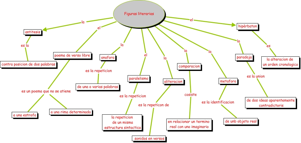 Este mapa conceptual tiene información relacionada a: antonio ocaña iñigo lirica, Figuras literarias la comparacion, aliteracion es la repeticon de sonidos en versos, paralelismo es la repeticion la repeticion de un misma estructura sintactica, poema de verso libre es un poema que no se atiene a una estrofa, comparacion cosiste en relacionar un termino real con uno imaginario, hipèrbaton es la alteracion de un orden cronologico, Figuras literarias la paradoja, Figuras literarias la anafora, Figuras literarias la aliteracion, anafora es la repeticion de una o varias palabras