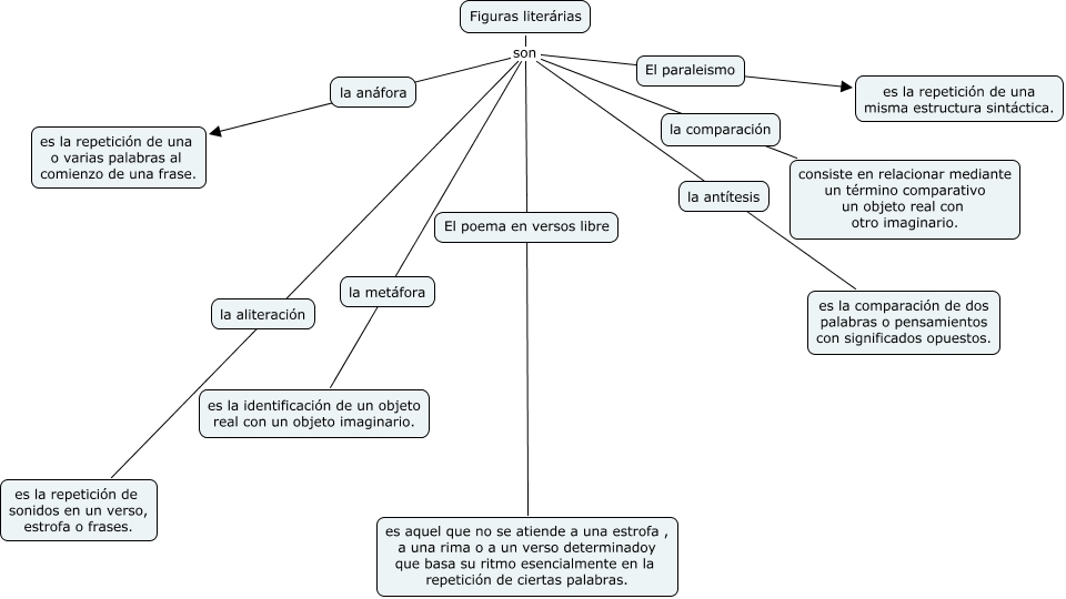 Este mapa conceptual tiene información relacionada a: ana hernández ávila-11, Figuras literárias son es la comparación de dos palabras o pensamientos con significados opuestos., Figuras literárias son es la identificación de un objeto real con un objeto imaginario., Figuras literárias son es la repetición de sonidos en un verso, estrofa o frases., Figuras literárias son es la repetición de una misma estructura sintáctica., El poema en versos libre es aquel que no se atiende a una estrofa , a una rima o a un verso determinadoy que basa su ritmo esencialmente en la repetición de ciertas palabras., Figuras literárias son es la repetición de una o varias palabras al comienzo de una frase., Figuras literárias son consiste en relacionar mediante un término comparativo un objeto real con otro imaginario., Figuras literárias son El poema en versos libre