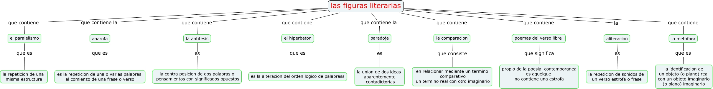 Este Cmap, tiene información relacionada con: diego la figurasd literarias, las figuras literarias la aliteracion, las figuras literarias que contiene la paradoja, la antítesis es la contra posicion de dos palabras o pensamientos con significados opuestos, anarofa que es es la repeticion de una o varias palabras al comienzo de una frase o verso, poemas del verso libre que significa propio de la poesia contemporanea es aquelque no contiene una estrofa, las figuras literarias que contiene poemas del verso libre, la metafora que es la identificacion de un objeto (o plano) real con un objeto imaginario (o plano) imaginario, las figuras literarias que contiene la antítesis, las figuras literarias que contiene el paralelismo, el paralelismo que es la repeticion de una misma estructura, paradoja es la union de dos ideas aparentemente contadictorias, aliteracion es la repeticion de sonidos de un verso estrofa o frase, la comparacion que consiste en relacionar mediante un termino comparativo un termino real con otro imaginario, el hiperbaton que es es la alteracion del orden logico de palabrass, las figuras literarias que contiene el hiperbaton, las figuras literarias que contiene la comparacion, las figuras literarias que contiene la anarofa, las figuras literarias que contiene la metafora
