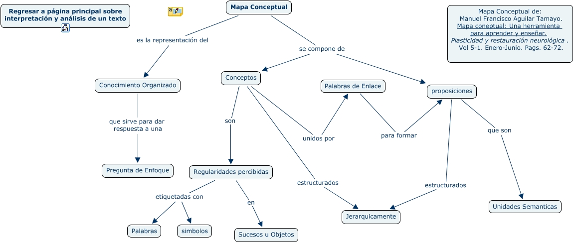 Este mapa conceptual tiene información relacionada a: Mapas conceptuales, Conceptos unidos por Palabras de Enlace, Regularidades percibidas en Sucesos u Objetos, Mapa Conceptual es la representación del Conocimiento Organizado, Mapa Conceptual se compone de Conceptos, Regularidades percibidas etiquetadas con simbolos, Conceptos estructurados Jerarquicamente, Conceptos son Regularidades percibidas, Palabras de Enlace para formar proposiciones, Regularidades percibidas etiquetadas con Palabras, proposiciones estructurados Jerarquicamente, Conocimiento Organizado que sirve para dar respuesta a una Pregunta de Enfoque, Mapa Conceptual se compone de proposiciones, proposiciones que son Unidades Semanticas