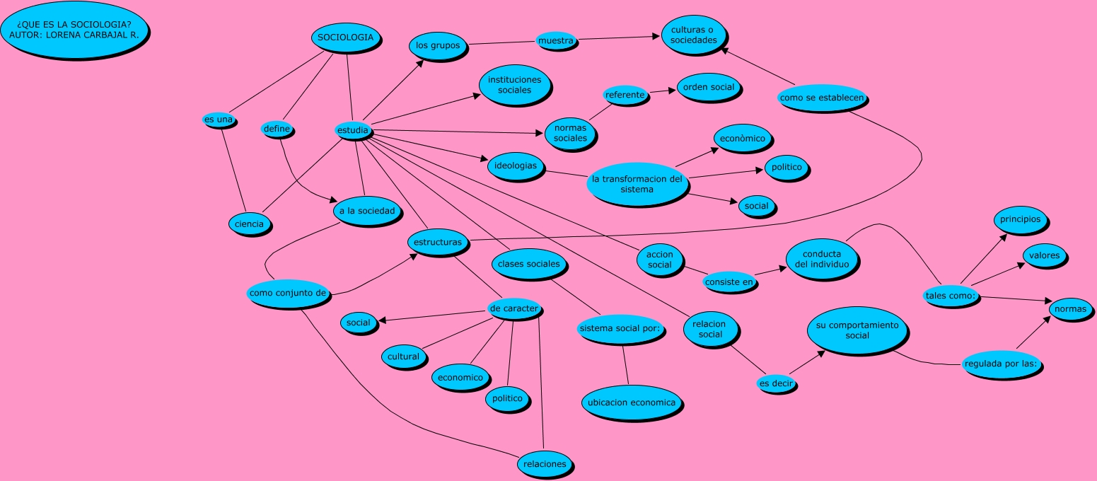 Este mapa conceptual tiene información relacionada a: QUE ES LA SOCIOLOGIA LORE, SOCIOLOGIA estudia los grupos, conducta del individuo tales como: valores, clases sociales sistema social por: ubicacion economica, a la sociedad como conjunto de estructuras, SOCIOLOGIA estudia clases sociales, ideologias la transformacion del sistema politico, ciencia estudia estructuras, ciencia estudia clases sociales, SOCIOLOGIA estudia instituciones sociales, relaciones de caracter politico