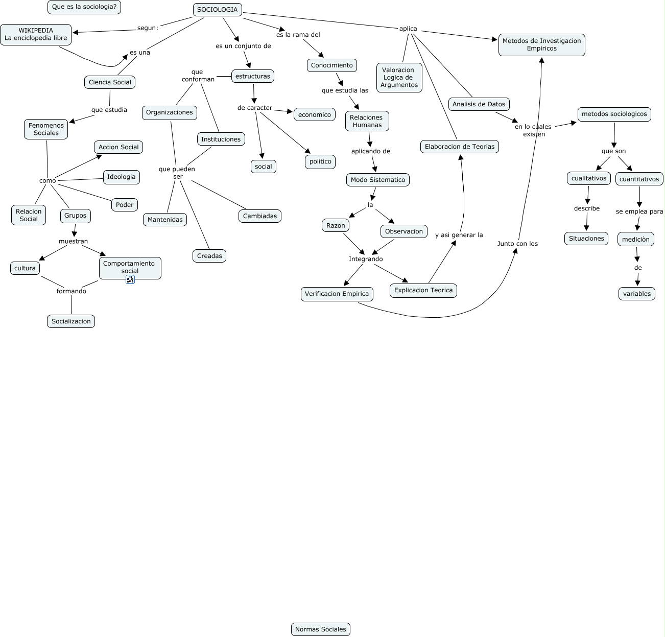 Este mapa conceptual tiene información relacionada a: Sociologia, WIKIPEDIA La enciclopedia libre es una Ciencia Social, Organizaciones que pueden ser Creadas, cultura formando Socializacion, Instituciones que pueden ser Cambiadas, metodos sociologicos que son cuantitativos, Explicacion Teorica y asi generar la Elaboracion de Teorias, Instituciones que pueden ser Mantenidas, SOCIOLOGIA aplica Analisis de Datos, Modo Sistematico la Razon, Fenomenos Sociales como Poder