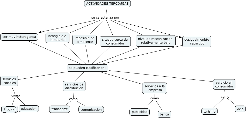 Este mapa conceptual tiene información relacionada a: alba3a tema 6, imposible de almacenar ???? se pueden clasificar en:, servicios de distribucion como comunicacion, desigualmenbte repartido ???? se pueden clasificar en:, servicios a la empresa como banca, servicios de distribucion como transporte, ACTIVIDADES TERCIARIAS se caracteriza por nivel de mecanizacion relativamente bajo, se pueden clasificar en: ???? servicios sociales, se pueden clasificar en: ???? servicio al consumidor, ACTIVIDADES TERCIARIAS se caracteriza por desigualmenbte repartido, ACTIVIDADES TERCIARIAS se caracteriza por imposible de almacenar
