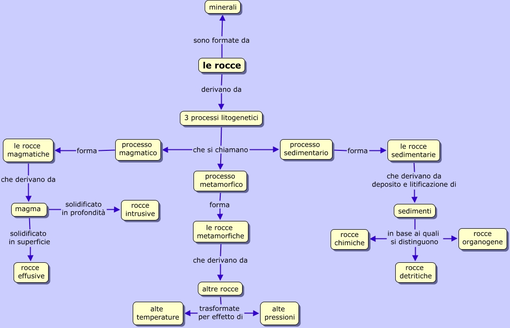 Questa Mappa Concettuale ha informazioni correlate a: Le rocce, magma solidificato in superficie rocce effusive, processo magmatico forma le rocce magmatiche, sedimenti in base ai quali si distinguono rocce chimiche, processo metamorfico forma le rocce metamorfiche, le rocce sedimentarie che derivano da deposito e litificazione di sedimenti, sedimenti in base ai quali si distinguono rocce organogene, altre rocce trasformate per effetto di alte pressioni, 3 processi litogenetici che si chiamano processo magmatico, 3 processi litogenetici che si chiamano processo sedimentario, le rocce metamorfiche che derivano da altre rocce, sedimenti in base ai quali si distinguono rocce detritiche, le rocce derivano da 3 processi litogenetici, magma solidificato in profondità rocce intrusive, altre rocce trasformate per effetto di alte temperature, le rocce sono formate da minerali, le rocce magmatiche che derivano da magma, processo sedimentario forma le rocce sedimentarie, 3 processi litogenetici che si chiamano processo metamorfico