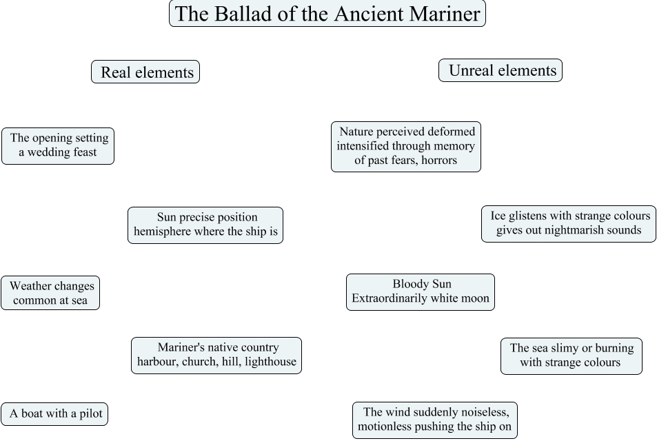 Questa Mappa Concettuale ha informazioni correlate a: S. T. Coleridge The Rime of the Ancient Mariner - Real - unreal elements