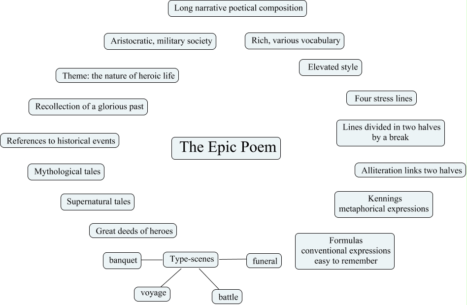 Questa Mappa Concettuale ha informazioni correlate a: The Epic Poem, Type-scenes battle, Type-scenes ???? banquet, Type-scenes ???? funeral, Type-scenes ???? voyage