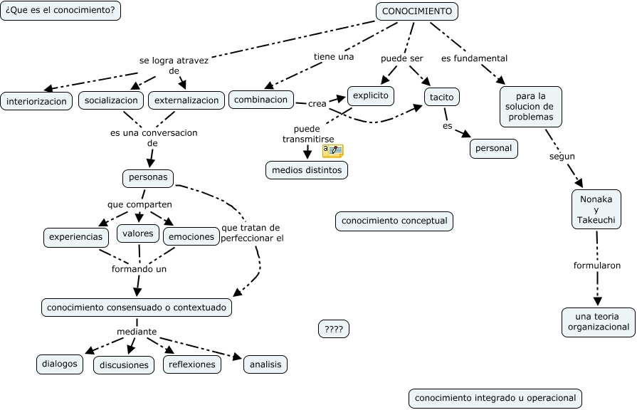 Este mapa conceptual tiene información relacionada a: Modelo1_conocimiento_prueba, conocimiento consensuado o contextuado mediante dialogos, personas que tratan de perfeccionar el conocimiento consensuado o contextuado, emociones formando un conocimiento consensuado o contextuado, CONOCIMIENTO se logra atravez de externalizacion, para la solucion de problemas segun Nonaka y Takeuchi, personas que comparten experiencias, personas que comparten valores, CONOCIMIENTO se logra atravez de interiorizacion, valores formando un conocimiento consensuado o contextuado, socializacion es una conversacion de personas