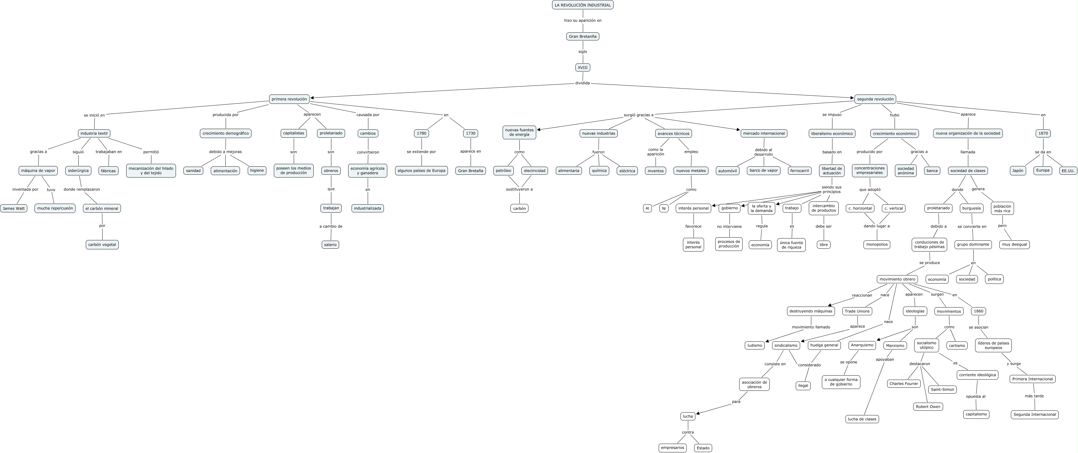 Este Cmap, tiene información relacionada con: 12. Laura Montero Acosta, crecimiento demográfico debido a mejoras sanidad, gobierno no interviene procesos de producción, Primera Internacional más tarde Segunda Internacional, capitalistas son poseen los medios de producción, movimiento obrero reaccionan destruyendo máquinas, primera revolución en 1780, intercambio de productos debe ser libre, avances técnicos como la aparición inventos, segunda revolución en 1870, segunda revolución aparece nueva organización de la sociedad, XVIII dividida segunda revolución, ideologías son Marxismo, petróleo sustituyeron a carbón, c. vertical dando lugar a monopolios, la oferta y la demanda regula economía, grupo dominante en sociedad, mercado internacional debido al desarrollo ferrocarril, movimientos como socialismo utópico, líderes de países europeos y surge Primera Internacional, nueva organización de la sociedad llamada sociedad de clases