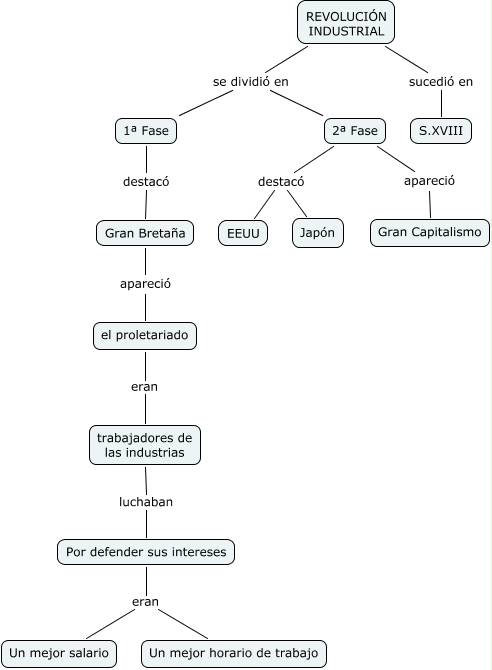 Este mapa conceptual tiene información relacionada a: 04.Macarena Astorga Arboleda - Revolución Industrial, 2ª Fase apareció Gran Capitalismo, REVOLUCIÓN INDUSTRIAL sucedió en S.XVIII, REVOLUCIÓN INDUSTRIAL se dividió en 1ª Fase, 2ª Fase destacó Japón, 2ª Fase destacó EEUU, REVOLUCIÓN INDUSTRIAL se dividió en 2ª Fase, el proletariado eran trabajadores de las industrias, trabajadores de las industrias luchaban Por defender sus intereses, 1ª Fase destacó Gran Bretaña, Gran Bretaña apareció el proletariado