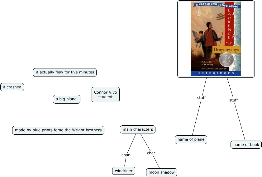 This Concept Map, created with IHMC CmapTools, has information related to: Airplane connor, main characters char. windrider, stuff name of plane, stuff name of book, main characters char. moon shadow