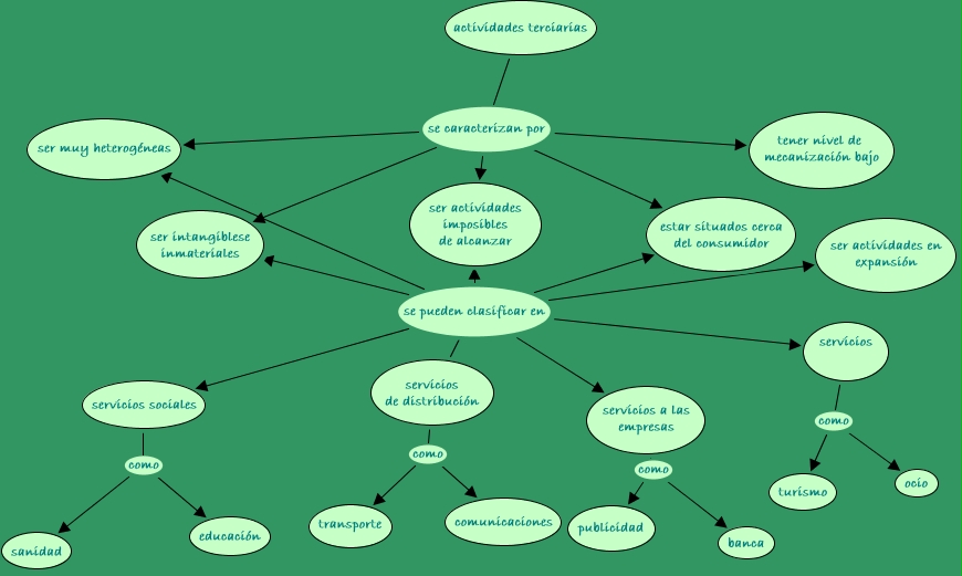 Este mapa conceptual tiene información relacionada a: julia millán gómez3ºB, actividades terciarias se caracterizan por ser actividades imposibles de alcanzar, servicios a las empresas como banca, servicios de distribución se pueden clasificar en servicios sociales, actividades terciarias se caracterizan por tener nivel de mecanización bajo, actividades terciarias se caracterizan por estar situados cerca del consumidor, actividades terciarias se caracterizan por ser muy heterogéneas, servicios de distribución se pueden clasificar en ser intangiblese inmateriales, servicios a las empresas como publicidad, servicios de distribución se pueden clasificar en servicios a las empresas, servicios como ocio