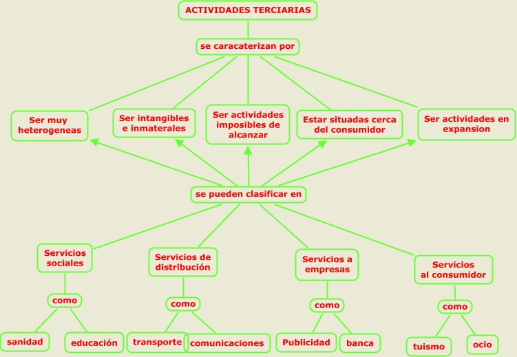 Este mapa conceptual tiene información relacionada a: Marina Rodriguez Gómez Nº 28 3º B, Servicios al consumidor como ocio, Servicios de distribución como comunicaciones, Servicios de distribución se pueden clasificar en Servicios sociales, Servicios de distribución se pueden clasificar en Ser muy heterogeneas, ACTIVIDADES TERCIARIAS se caracaterizan por Estar situadas cerca del consumidor, ACTIVIDADES TERCIARIAS se caracaterizan por Ser intangibles e inmaterales, Servicios de distribución se pueden clasificar en Ser actividades en expansion, Servicios de distribución se pueden clasificar en Ser intangibles e inmaterales, Servicios a empresas como Publicidad, Servicios de distribución se pueden clasificar en Estar situadas cerca del consumidor