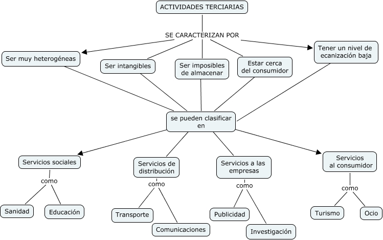 Este mapa conceptual tiene información relacionada a: FRANCISCO LEÓN ZACAR�?AS 3ºB Tema 6, Servicios sociales como Sanidad, ACTIVIDADES TERCIARIAS SE CARACTERIZAN POR Estar cerca del consumidor, Ser imposibles de almacenar ???? se pueden clasificar en, se pueden clasificar en ???? Servicios sociales, se pueden clasificar en ???? Servicios de distribución, Ser intangibles ???? se pueden clasificar en, se pueden clasificar en ???? Servicios al consumidor, Servicios a las empresas como Publicidad, Ser muy heterogéneas ???? se pueden clasificar en, Servicios de distribución como Transporte