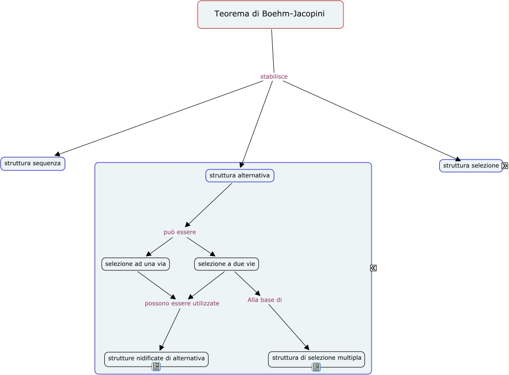 Questa Mappa Concettuale ha informazioni correlate a: Mappa, ripetizione postcondizionale può essere ripeti mentre, struttura ripetizione si rappresenta ripetizione postcondizionale, Teorema di Boehm-Jacopini stabilisce struttura sequenza, struttura alternativa può essere selezione ad una via, ripetizione precondizionale può essere esegui finchè, selezione a due vie Alla base di struttura di selezione multipla, ripetizione precondizionale può essere esegui mentre, Teorema di Boehm-Jacopini stabilisce struttura ripetizione, struttura alternativa può essere selezione a due vie, ripetizione postcondizionale alla base di ripetizione precondizionale, ripetizione postcondizionale può essere ripeti finchè, selezione a due vie possono essere utilizzate strutture nidificate di alternativa, ripetizione postcondizionale alla base di ripetizione con contatore, Teorema di Boehm-Jacopini stabilisce struttura alternativa, selezione ad una via possono essere utilizzate strutture nidificate di alternativa