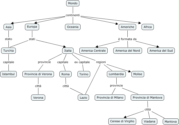 Questa Cmap, creata con IHMC CmapTools, contiene informazioni relative a: esercizio 2, Lombardia provincie Provincia di Milano, Provincia di Mantova città Mantova, Italia ex capitale Torino, Italia capitale Roma, Europa stati Italia, Mondo continenti Oceania, Europa stati Turchia, Mondo continenti Europa, Italia regioni Molise, Provincia di Mantova città Cerese di Virgilio, Lombardia provincie Provincia di Mantova, Italia provincie Provincia di Verona, Provincia di Mantova città Viadana, Mondo continenti Africa, Roma città Lazio, Turchia capitale Istambul, Americhe è formata da America del Sud, Provincia di Verona città Verona, Americhe è formata da America del Nord, Americhe è formata da America Centrale
