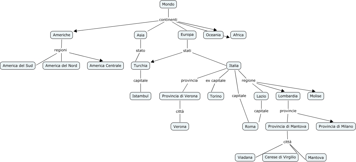 Questa Cmap, creata con IHMC CmapTools, contiene informazioni relative a: esercizio 2, Provincia di Mantova città Cerese di Virgilio, Lombardia provincie Provincia di Mantova, Americhe regioni America del Nord, Americhe regioni America del Sud, Provincia di Mantova città Mantova, Asia stato Turchia, Provincia di Verona città Verona, Lombardia provincie Provincia di Milano, Mondo continenti Africa, Italia regione Lazio, Lazio capitale Roma, Italia capitale Roma, Mondo continenti Americhe, Turchia capitale Istambul, Mondo continenti Europa, Italia regione Molise, Italia ex capitale Torino, Italia regione Lombardia, Mondo continenti Asia, Europa stati Italia