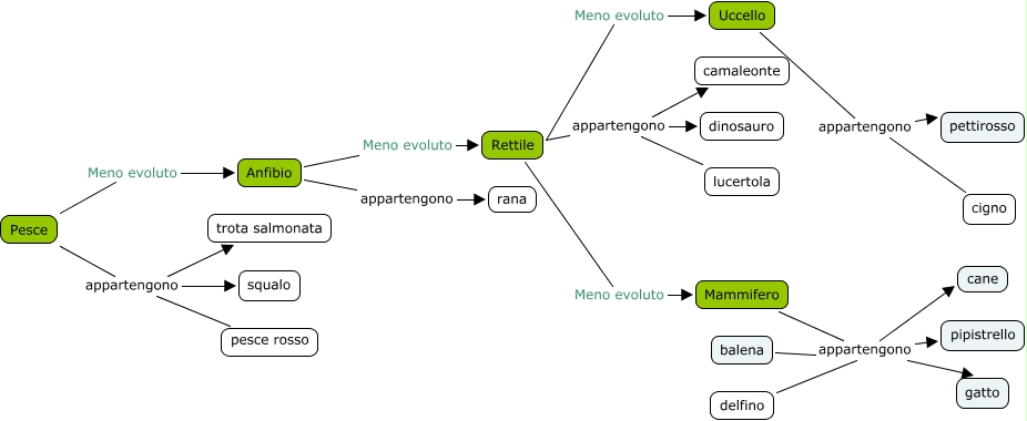Questa Cmap, creata con IHMC CmapTools, contiene informazioni relative a: esercizio 3, Pesce Meno evoluto Anfibio, delfino appartengono cane, Mammifero appartengono gatto, balena appartengono cane, Pesce appartengono pesce rosso, Rettile appartengono lucertola, Pesce appartengono trota salmonata, delfino appartengono pipistrello, balena appartengono pipistrello, Pesce appartengono squalo, balena appartengono gatto, Anfibio appartengono rana, Uccello appartengono pettirosso, Rettile Meno evoluto Uccello, cigno appartengono pettirosso, Rettile appartengono dinosauro, Mammifero appartengono pipistrello, Rettile Meno evoluto Mammifero, Rettile appartengono camaleonte, delfino appartengono gatto