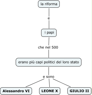 Questa Cmap, creata con IHMC CmapTools, contiene informazioni relative a: riforma 2, i papi che nel 500 erano più capi politici del loro stato, la riforma e i papi, erano più capi politici del loro stato e sono GIULIO II, erano più capi politici del loro stato e sono Alessandro VI, erano più capi politici del loro stato e sono LEONE X