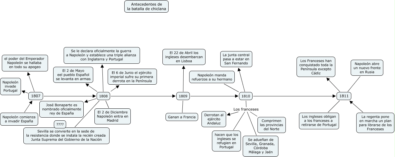 Este Cmap, tiene información relacionada con: 07.Maria Delgado Acosta.Chiclana, 1810 Los franceses Derrotan al ejército Andaluz, Napoleón abre un nuevo frente en Rusia 1811, 1810 Los franceses Comprimen las provincias del Norte, 1811 Los ingleses obligan a los franceses a retirarse de Portugal, 1809 1810, 1810 Los franceses Se adueñan de Sevilla, Granada, Córdoba Málaga y Jaén, 1809 El 22 de Abril los ingleses desembarcan en Lisboa, 1808 El 2 de Diciembre Napoleón entra en Madrid, Napoleón manda refuerzos a su hermano 1810, Napoleón comienza a invadir España 1807, 1811 Los Franceses han conquistado toda la Península excepto Cádiz, 1808 1809, 1807 el poder del Emperador Napoleón se hallaba en todo su apogeo, 1808 El 2 de Mayo eel pueblo Español se levanta en armas, 1808 José Bonaparte es nombrado oficialmente rey de España, 1810 Los franceses hacen que los ingleses se refugien en Portugal, 1808 Se le declara oficialmente la guerra a Napoleón y establece una triple alianza con Inglaterra y Portugal, 1808 El 6 de Junio el ejército imperial sufre su primera derrota en la Península, 1807 1808, 1808 Sevilla se convierte en la sede de la resistencia donde se instala la recién creada Junta Suprema del Gobierno de la Nación