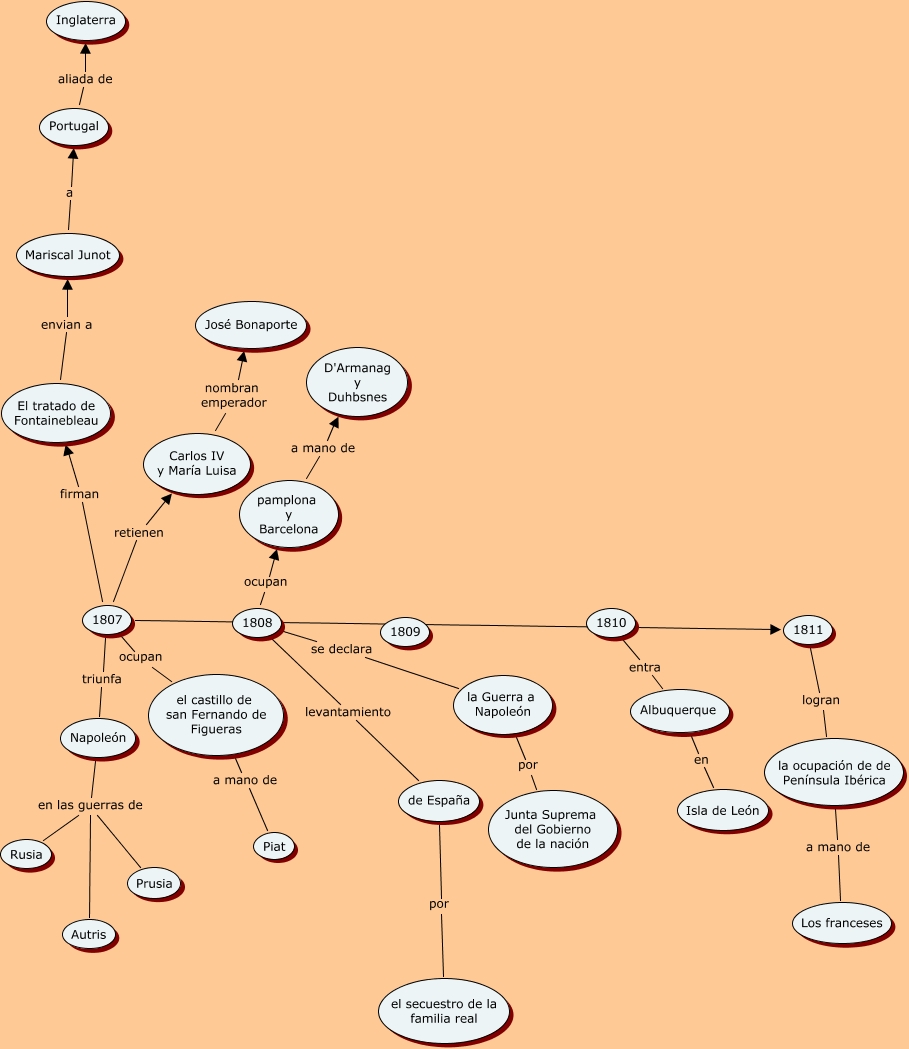 Este mapa conceptual tiene información relacionada a: 10.Ángela Gil Román, Napoleón en las guerras de Autris, 1807 ocupan el castillo de san Fernando de Figueras, 1807 firman El tratado de Fontainebleau, 1808 levantamiento de España, Napoleón en las guerras de Rusia, 1807 triunfa Napoleón, Albuquerque en Isla de León, de España por el secuestro de la familia real, Mariscal Junot a Portugal, Napoleón en las guerras de Prusia