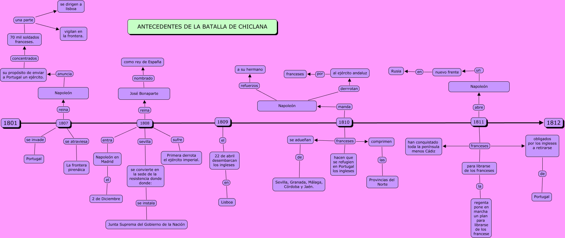 Este Cmap, tiene información relacionada con: 20.Raquel Moya Quintero, 1808 sufre Primera derrota el ejército imperial., 22 de abril desembarcan los ingleses en Lisboa, Napoleón derrrotan al ejército andaluz, 70 mil soldados franceses. una parte se dirigen a lisboa, Napoleón un nuevo frente, 1811 franceses han conquistado toda la península menos Cádiz, 1811 abre Napoleón, 70 mil soldados franceses. una parte vigilan en la frontera., 1808 reina José Bonaparte, 1810 franceses se adueñan, nuevo frente en Rusia, 1807 se atraviesa La frontera pirenáica, Napoleón refuerzos a su hermano, 1809 el 22 de abril desembarcan los ingleses, para librarse de los franceses la regenta pone en marcha un plan para librarse de los francese, al ejército andaluz por franceses, 1810 franceses comprimen, 1808 sevilla se convierte en la sede de la resistencia donde donde:, comprimen las Provincias del Norte, su propósito de enviar a Portugal un ejército. concentrados 70 mil soldados franceses.