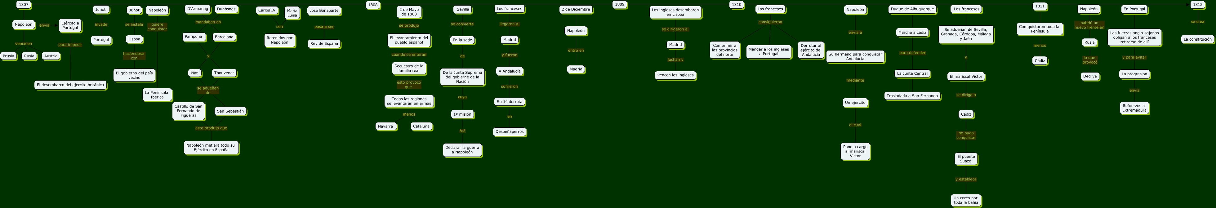 Este mapa conceptual tiene información relacionada a: 03.José María Aragón Meléndez, 2 de Diciembre Napoleón, El puente Suazo y establece Un cerco por toda la bahía, Napoleón vence en Prusia, Secuestro de la familia real esto provocó que Todas las regiones se levantaran en armas, D'Armanag mandaban en Pampona, 2 de Mayo de 1808 se produjo El levantamiento del pueblo español, Todas las regiones se levantaran en armas menos Cataluña, La Junta Central Trasladada a San Fernando, Las fuerzas anglo-sajonas obligan a los franceses retirarse de allí y para evitar La progresión, En la sede de De la Junta Suprema del gobierne de la Nación, Napoleón entró en Madrid, Se adueñan de Sevilla, Granada, Córdoba, Málaga y Jaén y El mariscal Víctor, Thouvenet se adueñan de San Sebastián, Barcelona y Thouvenet, A Andalucía sufrieron Su 1ª derrota, Napoleón envia Ejército a Portugal, Napoleón vence en Austria, Los franceses consiguieron Mandar a los ingleses a Portugal, Carlos IV son Retenidos por Napoleón, Lisboa haciendose con El gobierno del país vecino