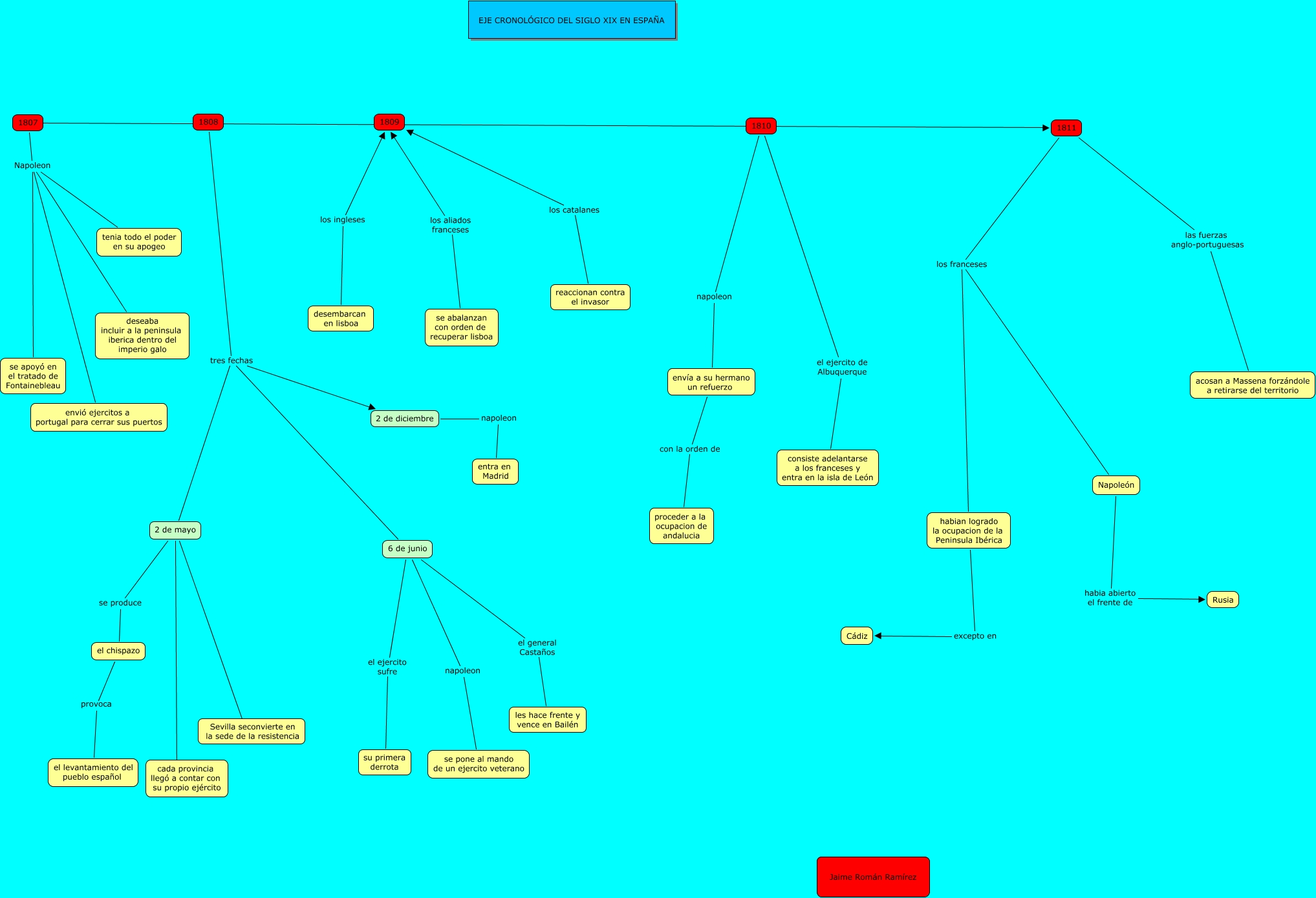 Este Cmap, tiene información relacionada con: 18.Jaime Roman Ramírez (eje cronologico s.XIX), 6 de junio el general Castaños les hace frente y vence en Bailén, reaccionan contra el invasor los catalanes 1809, desembarcan en lisboa los ingleses 1809, 1807 ???? 1811, Napoleón habia abierto el frente de Rusia, se abalanzan con orden de recuperar lisboa los aliados franceses 1809, envía a su hermano un refuerzo con la orden de proceder a la ocupacion de andalucia, 1808 tres fechas 2 de diciembre, habian logrado la ocupacion de la Peninsula Ibérica excepto en Cádiz, el chispazo provoca el levantamiento del pueblo español, 1807 Napoleon tenia todo el poder en su apogeo, 1811 los franceses Napoleón, 2 de mayo ???? Sevilla seconvierte en la sede de la resistencia, 1808 tres fechas 6 de junio, 1810 el ejercito de Albuquerque consiste adelantarse a los franceses y entra en la isla de León, 1810 napoleon envía a su hermano un refuerzo, 1811 los franceses habian logrado la ocupacion de la Peninsula Ibérica, 2 de diciembre napoleon entra en Madrid, 1807 Napoleon envió ejercitos a portugal para cerrar sus puertos, 1807 Napoleon deseaba incluir a la peninsula iberica dentro del imperio galo