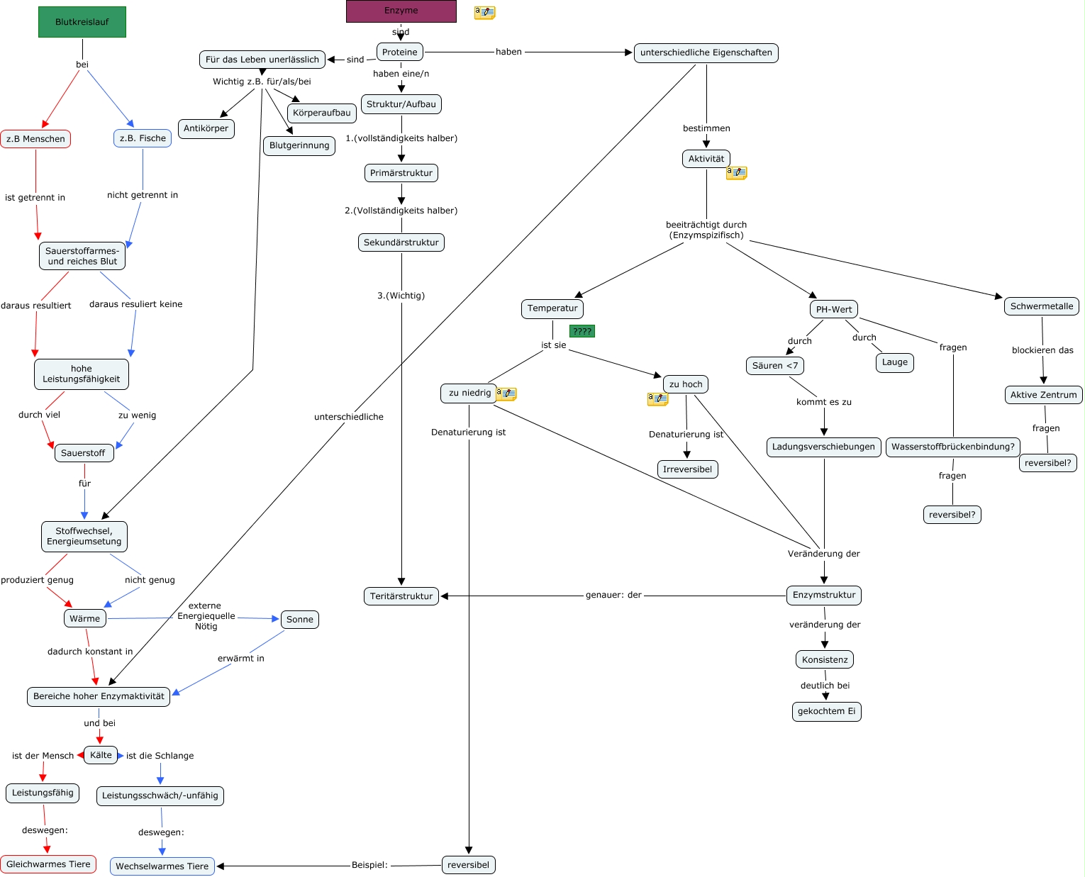 This Concept Map, created with IHMC CmapTools, has information related to: zusammenfassung enzyme, Sekundärstruktur 3.(Wichtig) Teritärstruktur, PH-Wert durch Säuren ɟ, Schwermetalle blockieren das Aktive Zentrum, zu hoch Veränderung der Enzymstruktur, PH-Wert fragen Wasserstoffbrückenbindung?, Für das Leben unerlässlich Wichtig z.B. für/als/bei Antikörper, zu hoch Denaturierung ist Irreversibel, Enzyme sind Proteine, unterschiedliche Eigenschaften unterschiedliche Bereiche hoher Enzymaktivität, Sauerstoffarmes- und reiches Blut daraus resuliert keine hohe Leistungsfähigkeit, Für das Leben unerlässlich Wichtig z.B. für/als/bei Blutgerinnung, Temperatur ist sie zu hoch, Konsistenz deutlich bei gekochtem Ei, Aktivität beeiträchtigt durch (Enzymspizifisch) Temperatur, reversibel Beispiel: Wechselwarmes Tiere, Struktur/Aufbau 1.(vollständigkeits halber) Primärstruktur, Proteine haben eine/n Struktur/Aufbau, unterschiedliche Eigenschaften bestimmen Aktivität, Stoffwechsel, Energieumsetung produziert genug Wärme, Temperatur ist sie zu niedrig