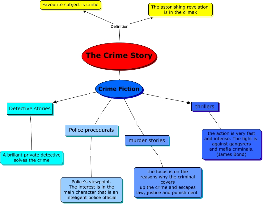 Questa Mappa Concettuale ha informazioni correlate a: Crime Mammoliti 3D, Police procedurals Police's viewpoint. The interest is in the main character that is an inteligent police official, Crime Fiction Police procedurals, The Crime Story Crime Fiction, The Crime Story Definition Favourite subject is crime, The Crime Story Definition The astonishing revelation is in the climax, murder stories the focus is on the reasons why the criminal covers up the crime and escapes law, justice and punishment, Crime Fiction thrillers, Crime Fiction Detective stories, Detective stories A brillant private detective solves the crime, Crime Fiction murder stories, thrillers the action is very fast and intense. The fight is against gangsrers and mafia criminals. (James Bond)