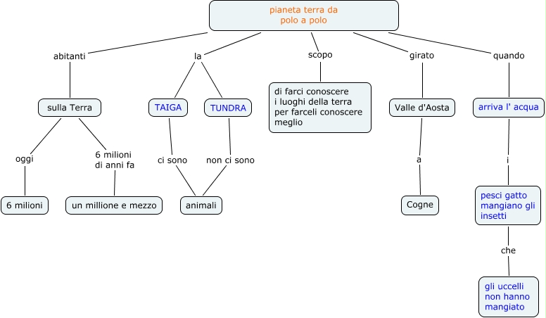 Questa Cmap, creata con IHMC CmapTools, contiene informazioni relative a: mappa 2 film, sulla Terra 6 milioni di anni fa un millione e mezzo, pianeta terra da polo a polo abitanti sulla Terra, pesci gatto mangiano gli insetti che gli uccelli non hanno mangiato, TUNDRA non ci sono animali, TAIGA ci sono animali, pianeta terra da polo a polo scopo di farci conoscere i luoghi della terra per farceli conoscere meglio, pianeta terra da polo a polo la TAIGA, pianeta terra da polo a polo girato Valle d'Aosta, sulla Terra oggi 6 milioni, Valle d'Aosta a Cogne, pianeta terra da polo a polo la TUNDRA, arriva l' acqua i pesci gatto mangiano gli insetti, pianeta terra da polo a polo quando arriva l' acqua