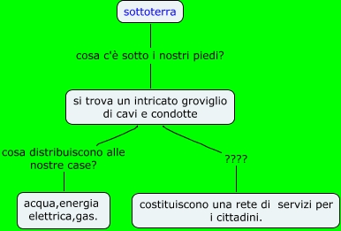 Questa Mappa Concettuale ha informazioni correlate a: indice4, si trova un intricato groviglio di cavi e condotte ???? costituiscono una rete di servizi per i cittadini., sottoterra cosa c'è sotto i nostri piedi? si trova un intricato groviglio di cavi e condotte, si trova un intricato groviglio di cavi e condotte cosa distribuiscono alle nostre case? acqua,energia elettrica,gas.