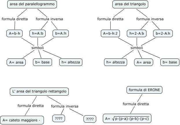 Questa Cmap, creata con IHMC CmapTools, contiene informazioni relative a: geometria -3, h=2⋅A:b simboli A= area, h=2⋅A:b simboli h= altezza, b=2⋅A:h simboli h= altezza, h=A:b simboli A= area, A=b⋅h:2 simboli A= area, A=b⋅h:2 simboli b= base, area del triangolo formula inversa b=2⋅A:h, h=2⋅A:b simboli b= base, area del paralellogrammo formula diretta A=b⋅h, L' area del triangolo rettangolo formula diretta A= cateto maggiore ⋅, h=A:b simboli b= base, b=A:h simboli h= altezza, area del triangolo formula inversa h=2⋅A:b, b=2⋅A:h simboli b= base, L' area del triangolo rettangolo formula inversa ????, L' area del triangolo rettangolo formula inversa ????, area del triangolo formula diretta A=b⋅h:2, formula di ERONE formula diretta <math xmlns="http://www.w3.org/1998/Math/MathML"> <mrow> <mtext> A= </mtext> <msqrt> <mtext> p⋅(p-a)⋅(p-b)⋅(p-c) </mtext> </msqrt> </mrow> </math>, A=b⋅h simboli b= base, A=b⋅h simboli A= area