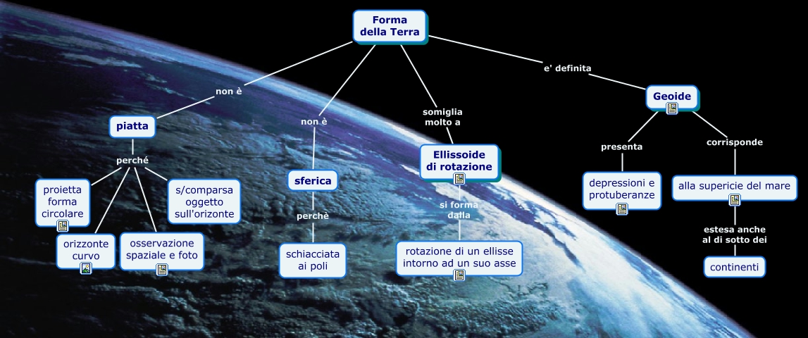 Questa Mappa Concettuale ha informazioni correlate a: Forma della Terra, Geoide corrisponde alla supericie del mare, Geoide presenta depressioni e protuberanze, Forma della Terra non è piatta, Forma della Terra non è sferica, piatta perché s/comparsa oggetto sull'orizonte, piatta perché orizzonte curvo, Ellissoide di rotazione si forma dalla rotazione di un ellisse intorno ad un suo asse, sferica perchè schiacciata ai poli, Forma della Terra e' definita Geoide, piatta perché osservazione spaziale e foto, Forma della Terra somiglia molto a Ellissoide di rotazione, piatta perché proietta forma circolare, alla supericie del mare estesa anche al di sotto dei continenti
