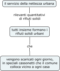 Questa Mappa Concettuale ha informazioni correlate a: il servizio della nettezza urbana, il servizio della nettezza urbana rilevanti quantitativi di rifiuti solidi tutti insieme formano i rifiuti solidi urbani, tutti insieme formano i rifiuti solidi urbani che vengono scaricati ogni giorno, in speciali cassonetti che il comune colloca vicino a ogni casa
