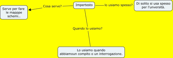 Questa Cmap, creata con IHMC CmapTools, contiene informazioni relative a: Impertesto, Impertesto Quando lo usiamo? Lo usiamo quando abbiamoun compito o un interrogazione., Impertesto lo usiamo spesso? Di solito si usa spesso per l'unversità ., Impertesto Cosa serve? Serve per fare le mapppe schemi..